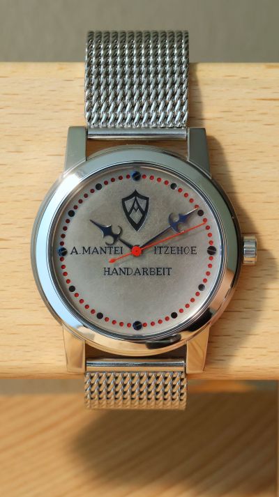 Zifferblatt: 925/- Sterling Silber, handgraviert, gebohrt, mattiert, handbemalt